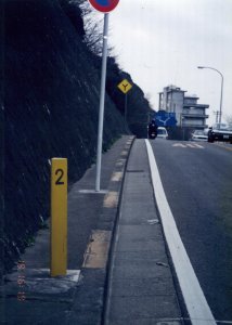 神奈川県横須賀市(19日 16:19) これが国道16号線の、2kmポスト。ずっと続いているものでもなく、これより先では、あまり見かけられることはなかった。 今日はちょっと早いが、横須賀に宿を取ることにした。千葉側での山道がこたえたし、横須賀も山が多く、すっかりくたびれてしまった。 |