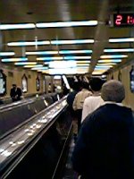 動く歩道です。ちょっと見づらいですが、みなさん左側を開けています。そう。東京の皆さんならお分かりでしょうが、東京と逆です。大阪では、左を開けるように指示されているということで、ほぼ常識のようです。
