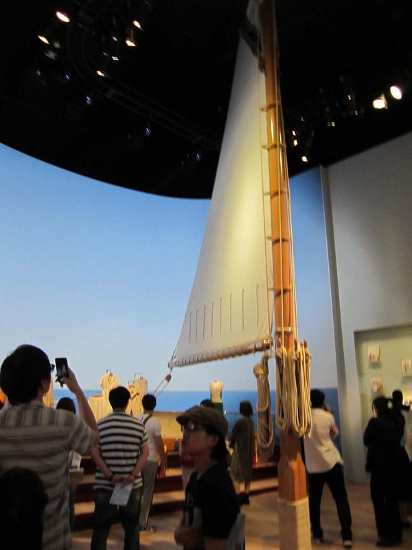 特に「旅の創造」のコーナーでは、ヨット(クルーズ)、自動車、飛行機、鉄道…と、新しい輸 送手段が登場し発展するのにあわせて、ルイ・ヴィトンのトランクも、それらにふさわしい進化を遂げていく様を紹介していた。